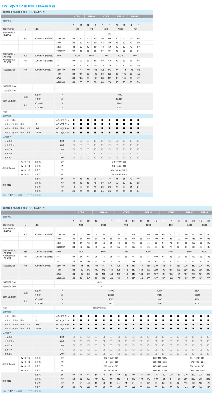 壳架电流规格最小至400A,满足特殊客户需求。 六种分断等级,最高达135Ka。全系列Ics=100%Icu。