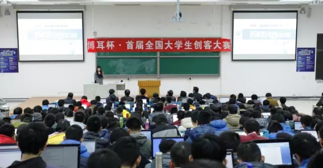 12月16日,“智能改变生活”博耳杯·首届全国大学生创客大赛走进校园活动在北京航空航天大学精彩上演,能容纳近400人的教室座无虚席!