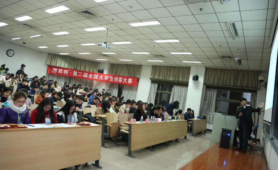18:30,博耳杯·第二届全国大学生创客大赛宣讲正式开始。虽然气温骤降,但同学们的参与热情依然如往届一样高涨。宣讲前后,能容纳近200人的教室,陆陆续续已无虚席。