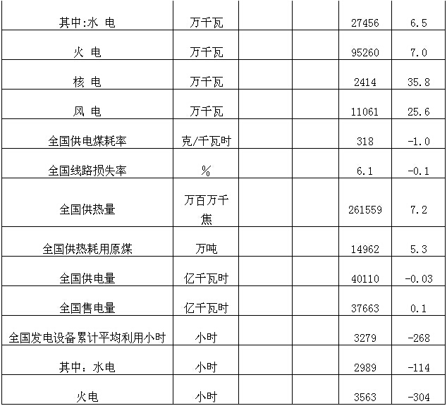1-10月,全国发电设备累计平均利用小时为3279小时,同比减少268小时。其中,水电设备平均利用小时为2989小时,减少114小时;火电设备平均利用小时为3563小时,减少304小时。