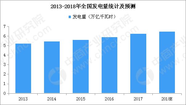 近年来,我国发电量保持增长,从2012年的约4.8万亿千瓦时到2017年的约6.3万亿千瓦时,我国发电量实现了30%的增长。其中,2017年全国发电量6.3万亿千瓦时,比上年增长5.9%。