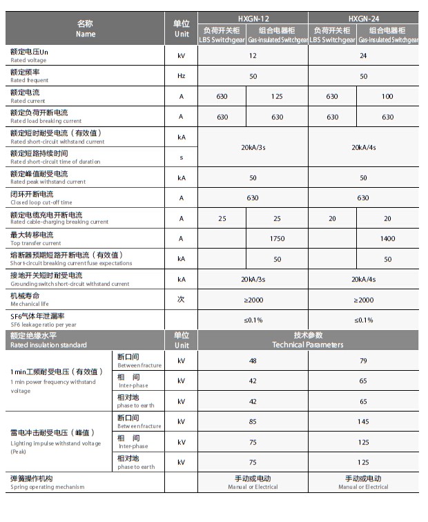 HXGN-12、HXGN-24系列单元式六氟化硫环网柜产品,是以六氟化硫三工位开关作为主隔离单元,而整柜母线系统采用空气绝缘的紧凑型环网柜产品,适用于电网配电设备重既紧凑又可扩充的金属封闭式开关设备,具有结构简单、操作灵活、连锁可靠、安装方便等特点,对各种不同的应用场合、不同的用户要求均能提供令人满意的技术方案。结合传感技术和最新保护继电器的采用,加上先进的技术性能及轻便灵活的装配方案,可以完全满足市场不断变化的需求。HXGN-12、HXGN-24型单元式六氟化硫环网柜以其优异的性价比,广泛应用于各类变电站使用场合。